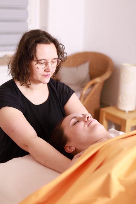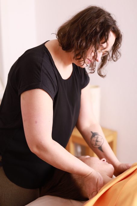 Mit sanften Griffen löse ich Verspannungen im Rücken,